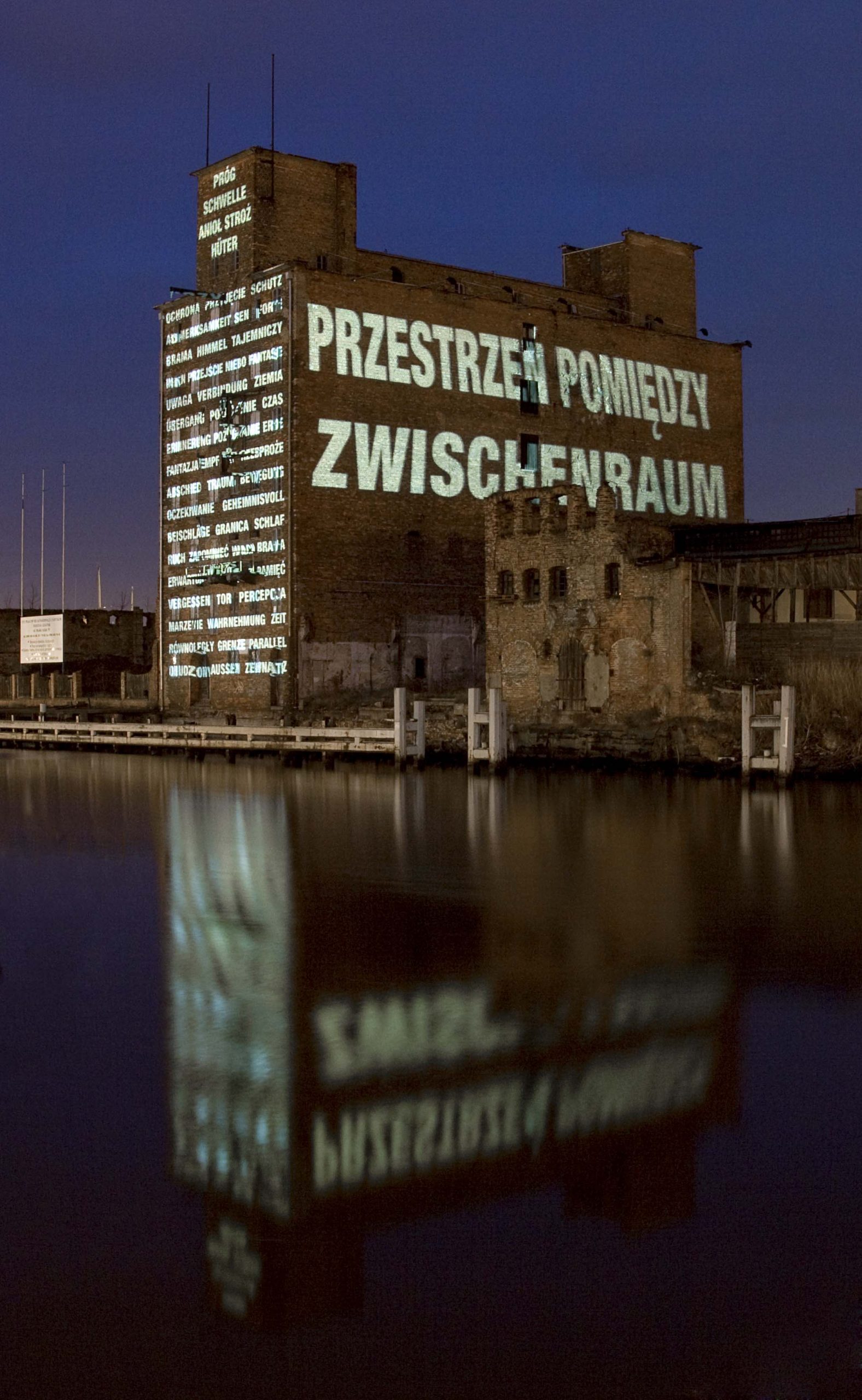 One of the examples was the intervention “ACH” by the artists’ collective Hartung | Trenz in the GUENTER GRASS GALLERY. In a multi-channel projection, they developed a composition of German and Polish text around the sound expressing surprise “ACH” _ being the same in German and Polish. To read between letters and lines, the viewers had to step into the projection beams and shut off one or more of the projection layers. This activity that allowed the visitors to see and to read included the viewer as active and subjective ones. At the same time, the artwork was continuously reshaped by the audience.