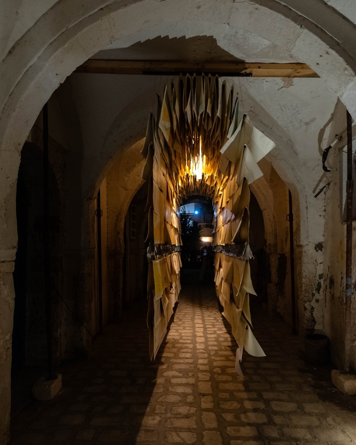 With āRitualā, the duo Ponks created a meditative passage in which geography, history, and human stories converged, offering a poignant tribute to the Maltese diaspora and their lasting imprint on Djerba. Situated within the entrance passage of the Fondouk Malti, the gateway between the old townās heart and the Maltese Quarter, Ponksā āRitualā installation evoked the profound history and enduring legacy of Maltese migrants in Djerba.